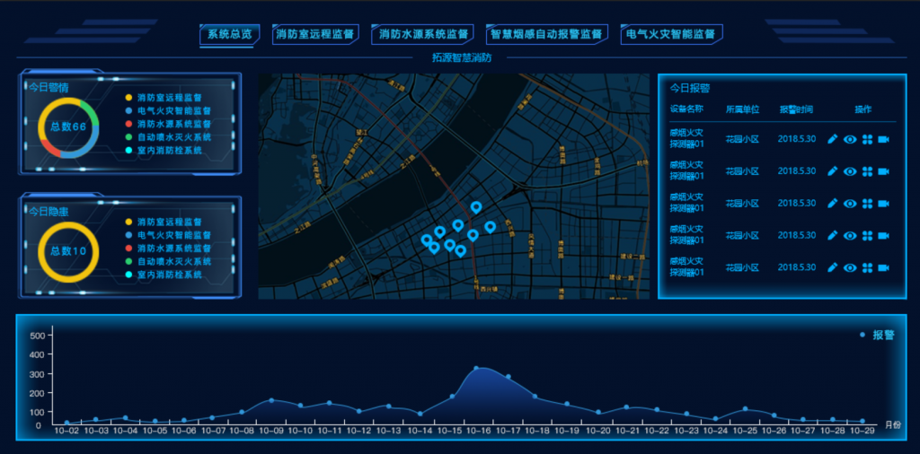 3.管理過程報表分析 每家單位的火警與故障記錄都存儲在歷史記錄中,并進行報表分析,可以根據(jù)過往數(shù)據(jù)為單位提供針性的管理方案,做到省時、省力、省錢又高效